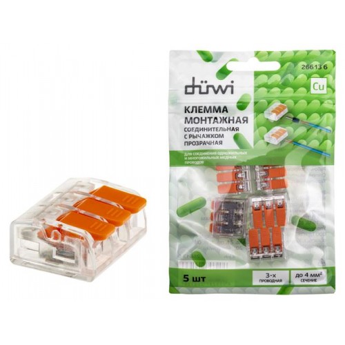 Клеммы соединительные монтажные duwi с рычажком прозрачные аналог WAGO СМК 223-41, 4мм2, 5 шт (kastd) в магазинах Ашан