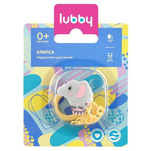 Клипса-держатель для пустышек, цепочка Lubby, от 0 м, слон (kastd) в магазинах Ашан