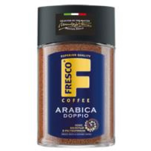Кофе Fresco Arabica Doppio – растворимый сублимированный кофе с добавлением натурального жареного молотого кофе, представленный в удобной упаковке 100 грамм. Этот кофе создан по уникальной технологии из лучших сортов арабики, что гарантирует его насыщенный плотный вкус с деликатной горчинкой, изысканное послевкусие и стойкий аромат. В течение дня, когда нужно быть бодрым и энергичным, этот кофе станет отличным решением для делового человека. Приготовьте его, добавив 1-2 чайные ложки кофе в горячую кипяченую воду, и наслаждайтесь неповторимым вкусом и ароматом. Дополнительно можно дополнить кофе молоком или сахаром по своему вкусу.