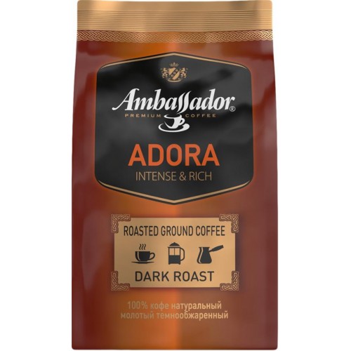 Кофе молотый AMBASSADOR Adora натуральный жареный, темная обжарка, 95г в магазинах Лента