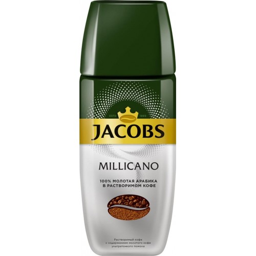 Кофе растворимый JACOBS Millicano натуральный сублимированный с добавлением молотого кофе, ст/б, 90г в магазинах Лента