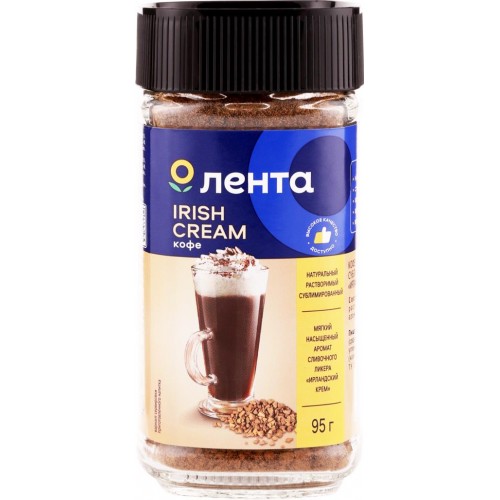 Кофе растворимый ЛЕНТА с ароматом ирландского крема сублимированный, 95г в магазинах Лента