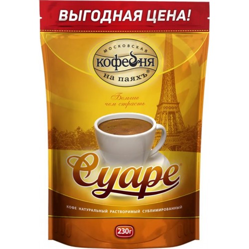 Кофе растворимый МОСКОВСКАЯ КОФЕЙНЯ НА ПАЯХЪ Суаре - натуральный сублимированный продукт, произведенный по старинному французскому рецепту. В процессе создания этого кофе были тщательно подобраны сорта из Колумбии и Бразилии, что позволило добиться мягкого, полного вкуса с насыщенным ароматом. Ощутите себя гостем уютной парижской кофейни, наслаждаясь каждой чашкой этого изысканного напитка. Теперь этот замечательный кофе можно приобрести со скидкой в по карте постоянного покупателя.