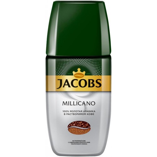 Кофе растворимый с добавлением молотого JACOBS Millicano сублимированный натуральный, ст/б, 160г в магазинах Лента
