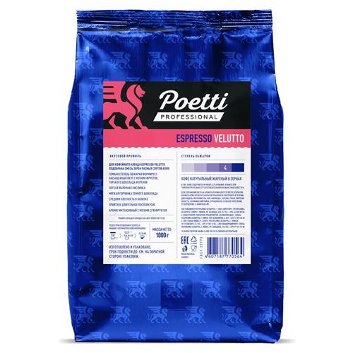 Кофе в зернах Poetti Espresso Velutto натуральный жареный, 1 кг (kastd) в магазинах Ашан