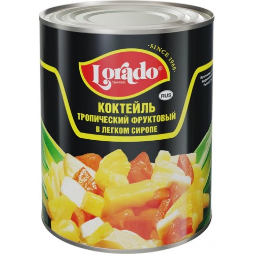 Коктейль фруктовый ЛОРАДО Тропический, в легком сиропе, 850г в магазинах Лента