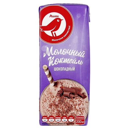Коктейль молочный АШАН Красная птица шоколадный 2% БЗМЖ, 200 мл (kastd) в магазинах Ашан