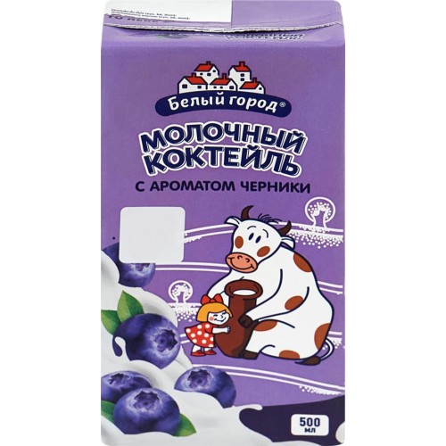 Коктейль молочный БЕЛЫЙ ГОРОД Черника 1,5%, без змж, 500г в магазинах Лента