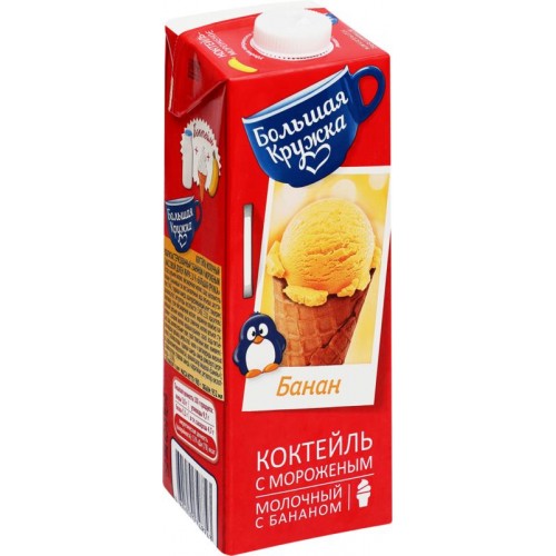 Коктейль молочный БОЛЬШАЯ КРУЖКА Банан с мороженым 3%, без змж, 980г в магазинах Лента