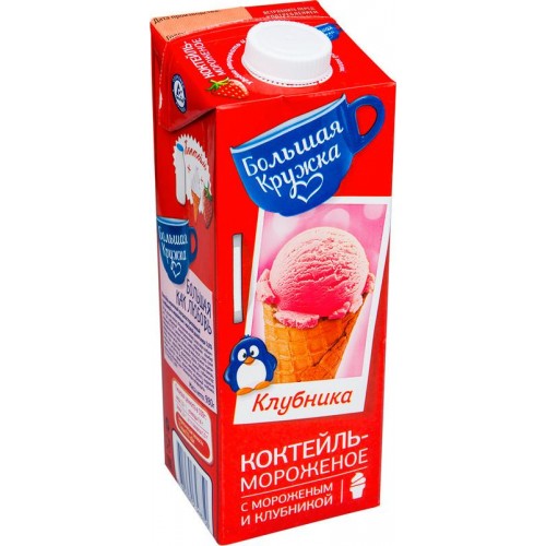 Коктейль молочный Большая Кружка с клубникой и мороженым ультрапастеризованный 3%, 980мл в магазинах Перекресток