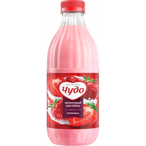 Коктейль молочный ЧУДО Клубника 2%, без змж, 950г в магазинах Лента