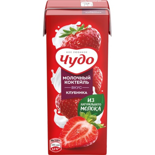 Коктейль молочный ЧУДО Клубника, ваниль 2%, без змж, 200мл в магазинах Лента