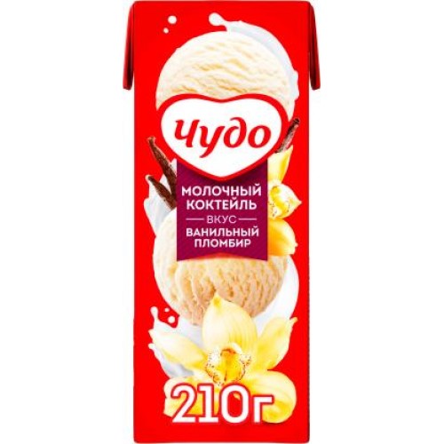 Коктейль молочный Чудо Ванильный пломбир стерилизованный 2% 200мл в магазинах Магнит