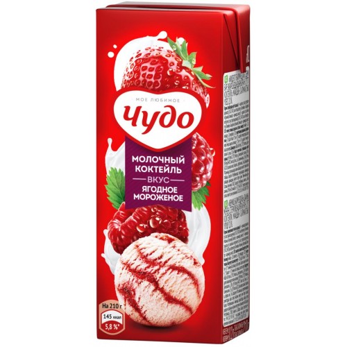 Коктейль молочный ЧУДО Ягодное мороженое 2%, без змж, 200г в магазинах Лента