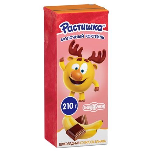 Коктейль молочный Растишка для детей шоколадный банан ультрапастеризованный 2%, 210г в магазинах Перекресток