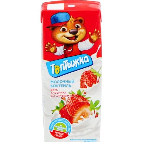 Коктейль молочный ультрапастеризованный ТОПТЫЖКА Клубника со сливками 3,2%, без змж, 200г в магазинах Лента