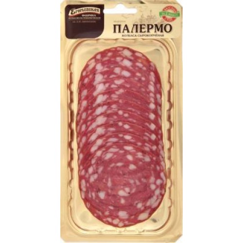 Колбаса Егорьевская Палермо - это сырокопченый мясной продукт, нарезанный тонкими ломтиками и упакованный в вакуумное упаковку весом 100 г. Благодаря такой упаковке, колбаса сохраняет свои вкусовые качества, пользу и свежесть. Колбаса является источником белка и животных жиров необходимых для поддержания здоровья организма.