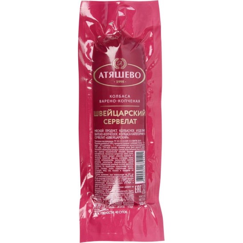Колбаса копчено-вареная АТЯШЕВО Сервелат Швейцарский, 300г в магазинах Лента