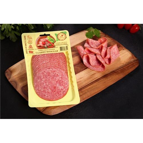 Колбаса копчено-вареная ИНЕЙ Салями Финская, нарезка, 150г в магазинах Лента