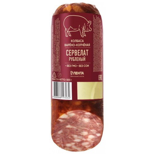 Колбаса копчено-вареная ЛЕНТА Сервелат рубленый, 500г в магазинах Лента