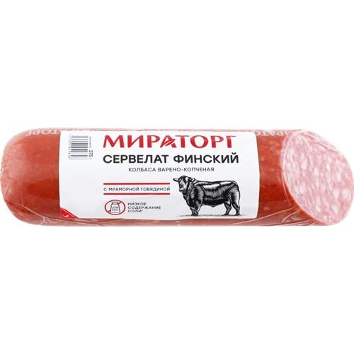 Колбаса копчено-вареная МИРАТОРГ Сервелат Финский, 375г в магазинах Лента