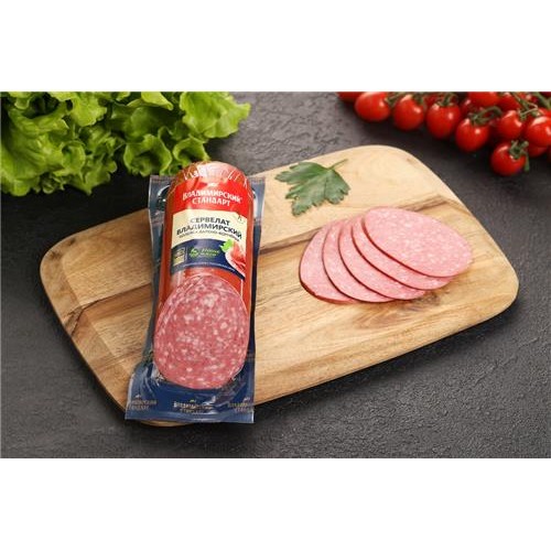 Сервелат Владимирский изготавливается по техническим условиям (ТУ), являющимся уникальной разработкой технологов завода ВЛАДИМИРСКИЙ СТАНДАРТ. В процессе производства используется только высококачественное охлажденное сырье, что обеспечивает высокие вкусовые качества готовой продукции.