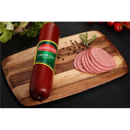 Колбаса копчено-вареная ВЛМК Сервелат Финский, категория Б, весовая в магазинах Лента