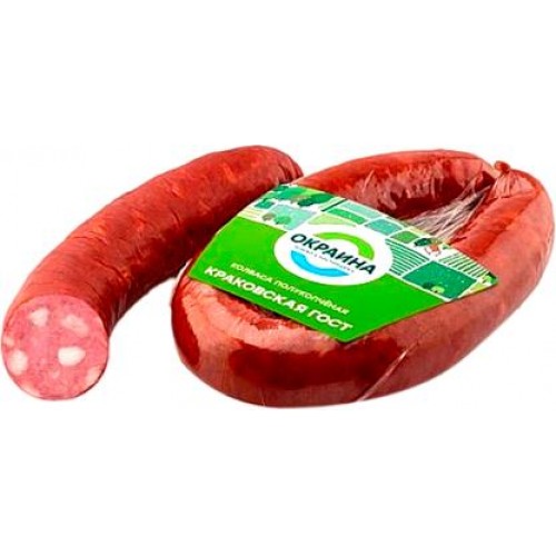 Колбаса Окраина Краковская полукопченая 350г в магазинах Магнит