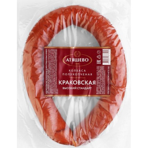 Колбаса полукопченая АТЯШЕВО Краковская Высокий стандарт, 300г в магазинах Лента