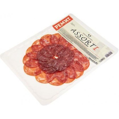 Колбаса Ремит Assorti сырокопченая нарезка 80г в магазинах Магнит