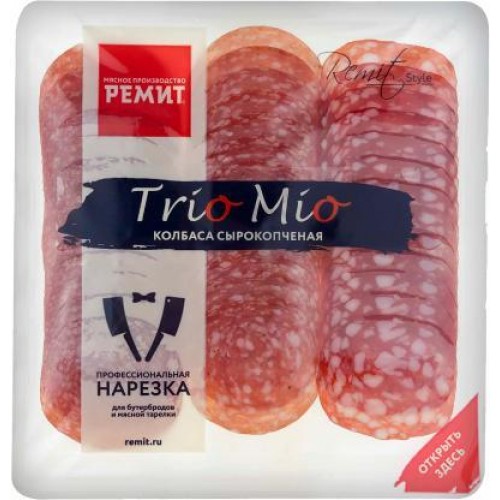 Колбаса Ремит Trio Mio Ассорти сырокопченая нарезка 100г в магазинах Магнит