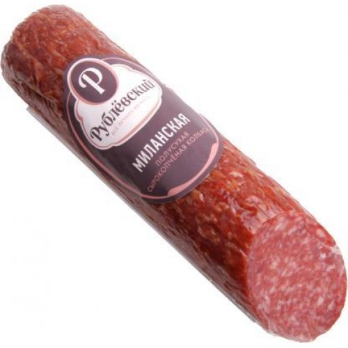 Колбаса Рублевский «Миланская» сырокопченая полусухая, вес 270 грамм, производится по традиционному итальянскому рецепту с использованием натуральных ингредиентов и долгим процессом копчения.