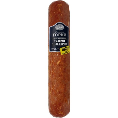 Колбаса сырокопченая БЛИЖНИЕ ГОРКИ Салями Дель Гарди – это прекрасный выбор для настоящих мясоедов, которые ценят изысканный вкус и легкую шпиковую нотку. Созданная из свиного окорока, эта колбаса обладает неповторимым ароматом итальянских трав и тонким оттенком копчения.