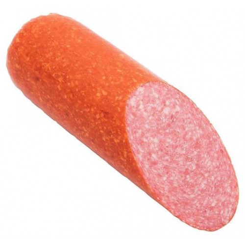 свинина, шпик, вода, нитритно-посолочная смесь (соль, фиксатор окраски нитрит натрия), молочный белок, животный белок (свиной), экстракты натуральных специй (перец черный, мускатный орех, кориандр), ароматизаторы, регулятор кислотности (трифосфат натрия (5-замещенный)), стабилизатор (дигидропирофосфат натрия), антиокислитель (изоаскорбат натрия, аскорбиновая кислота), мальтодекстрин. краситель (кармины)