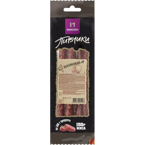 Колбаски МИКОЯН Пивчики с чесноком сырокопченые 1-й сорт, 95г в магазинах Лента