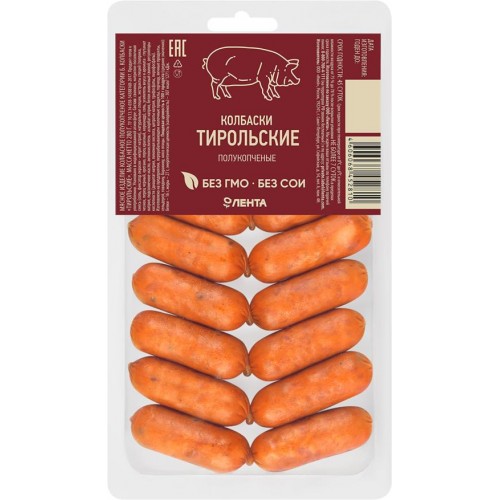 Колбаски полукопченые ЛЕНТА Тирольские, 280г в магазинах Лента