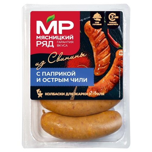 Колбаски свиные варено-копченые Мясницкий ряд Для жарки и гриля с паприкой и чили, 500 г в магазинах Ашан