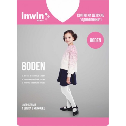 Колготки детские INWIN 80 den белые, без рисунка в магазинах Лента
