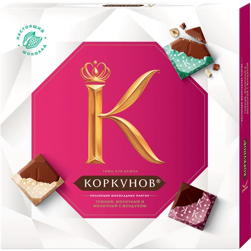 Коллекция плиток шоколада Коркунов: молочный, темный, молочный с дробленным фундуком, 131г в магазинах Пятерочка