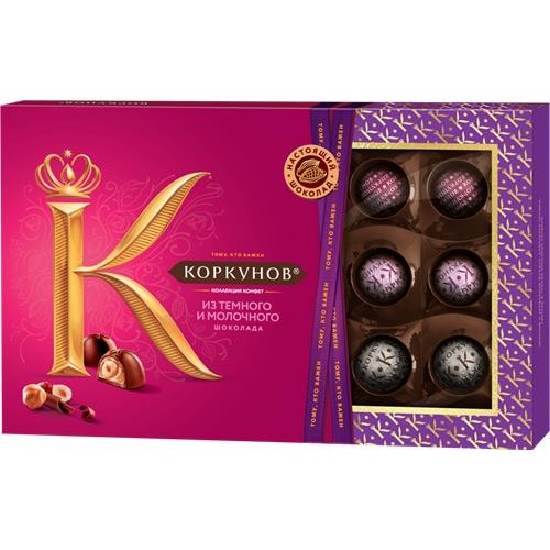 Конфеты КОРКУНОВ Ассорти из темного и молочного шоколада, 165г в магазинах Лента