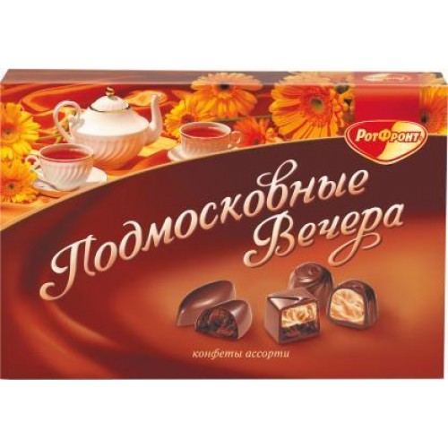 Конфеты Красный Октябрь «Подмосковные вечера» Ассорти – это изысканный набор кондитерских изделий весом 200 грамм, включающий конфеты различной формы и начинки. В ассортименте представлены конфеты с кремовой начинкой, насыщенной ароматом пломбира; шоколадные конфеты с нежной текстурой; двухслойные конфеты с помадкой и кремом; а также множество других оригинальных вкусов.