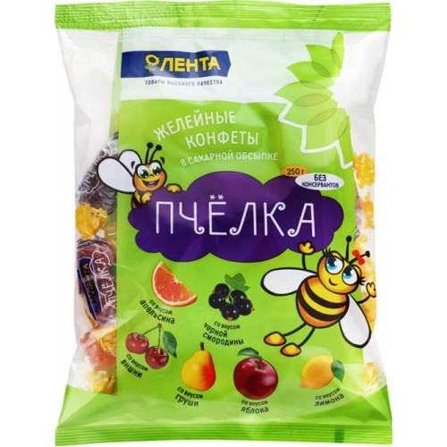 Конфеты ЛЕНТА Пчелка микс желейные неглазированные, 250г в магазинах Лента