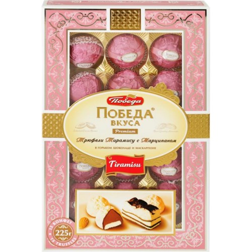 Конфеты ПОБЕДА ВКУСА Трюфели тирамису с марципаном в горьком шоколаде с сыром маскарпоне, 225г в магазинах Лента
