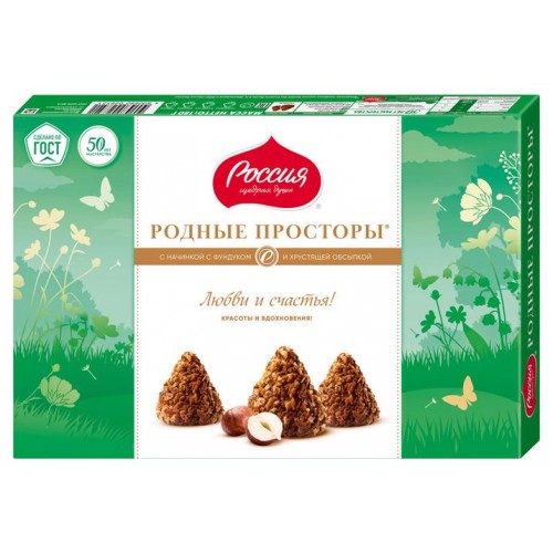 Конфеты Россия - Щедрая душа! Родные Просторы с начинкой с фундуком, 180 г (kastd) в магазинах Ашан