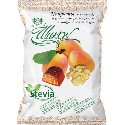 Конфеты ШИКОН Курага с грецким орехом в шоколадной глазури, на стевии, 210г в магазинах Лента
