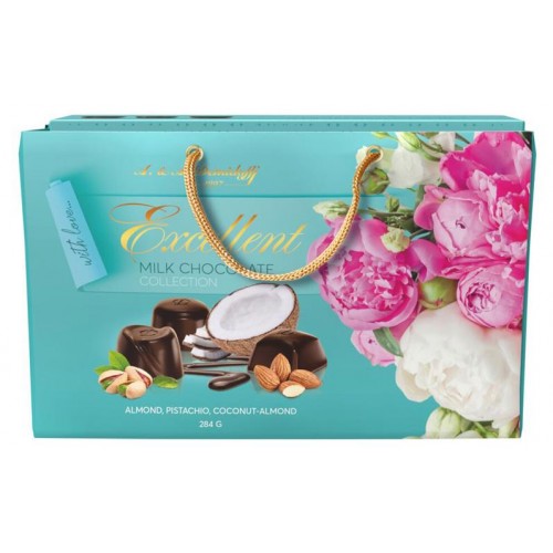 Конфеты шоколадные A.&A. Demidoff Ассорти в молочном шоколаде с начинками фисташковый крем миндальный крем кокос-миндаль, 284 г (kastd) в магазинах Ашан