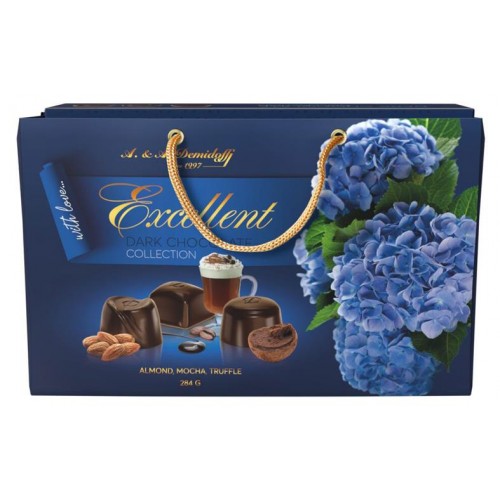 Конфеты шоколадные A.&A. Demidoff Ассорти в темном шоколаде с начинками трюфельный крем миндальный крем мокко, 284 г (kastd) в магазинах Ашан