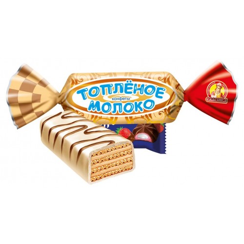 Конфеты Славянка Топленое молоко вафельные глазированные, вес (kastd) в магазинах Ашан