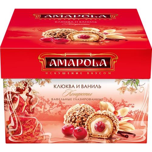 Конфеты вафельные АМАПОЛА с клюквой и ванильным вкусом глазированные, 100г в магазинах Лента