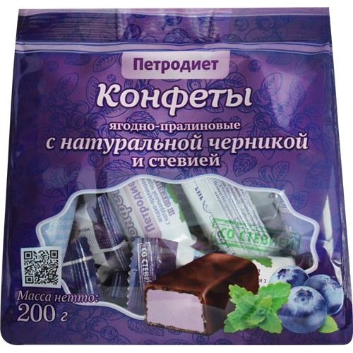 Конфеты ягодно-пралиновые ПЕТРОДИЕТ с натуральной черникой и стевией, на фруктозе, 200г в магазинах Лента
